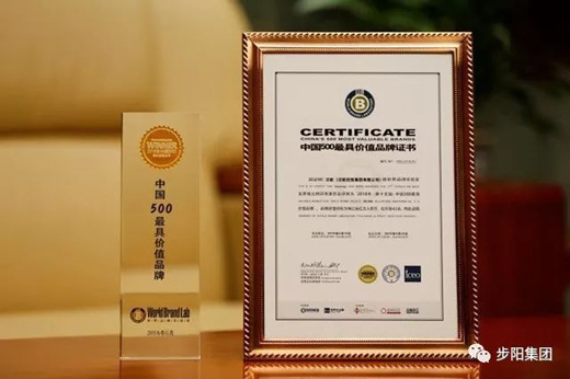 熱烈祝賀步陽(yáng)集團(tuán)入選“中國(guó)500最具價(jià)值品牌”