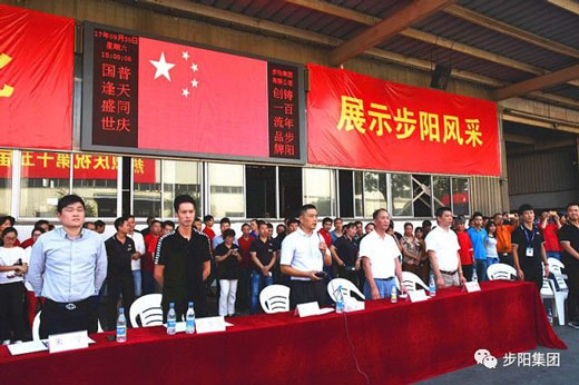 9月30日下午,第十五屆步陽文化節(jié)開幕式暨各步陽集團(tuán)隊(duì)列比賽隆重舉行,各事業(yè)部、各部門分成8個(gè)方隊(duì)集結(jié)在步陽文化廣場(chǎng)接受檢閱,集團(tuán)董事長(zhǎng)徐步云、集團(tuán)副總經(jīng)理盧俊亮、程明松、朱寧帶領(lǐng)總部近3000多名員...