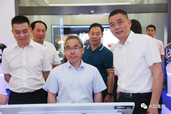 勞曉峰局長(zhǎng)在董事長(zhǎng)陪同下參觀步陽科技館