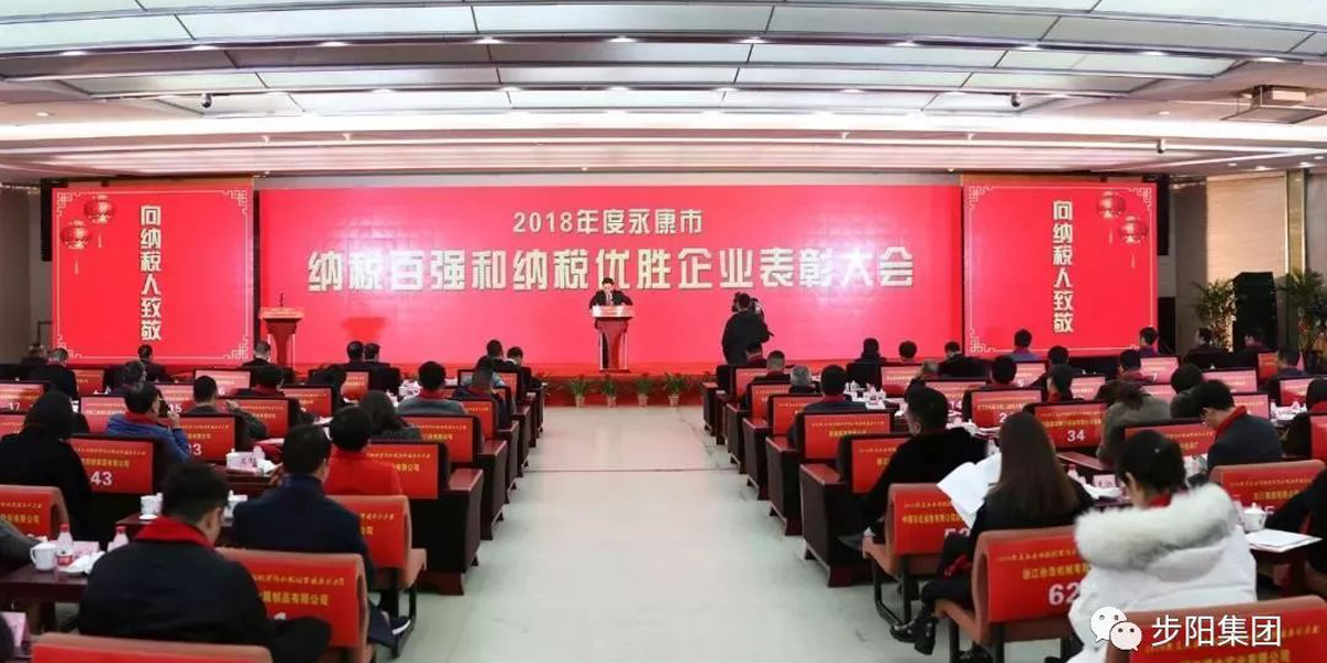2019年1月24日,“2018年度永康市納稅百強和優(yōu)勝企業(yè)表彰大會”在國際會展中心隆重舉行。步陽集團再次位列年度永康市納稅百強企業(yè)榜首,全年上交國家稅收總額達4.33億元,其中永康區(qū)域達到了2.38億元,突破了步陽歷史最高水平,繼續(xù)成為永康市名列前茅的納稅大戶。被永康市人民政府授予“2018年度永康市納稅百強企業(yè)”稱號,步陽集團董事長徐步云出席表彰大會并發(fā)言。