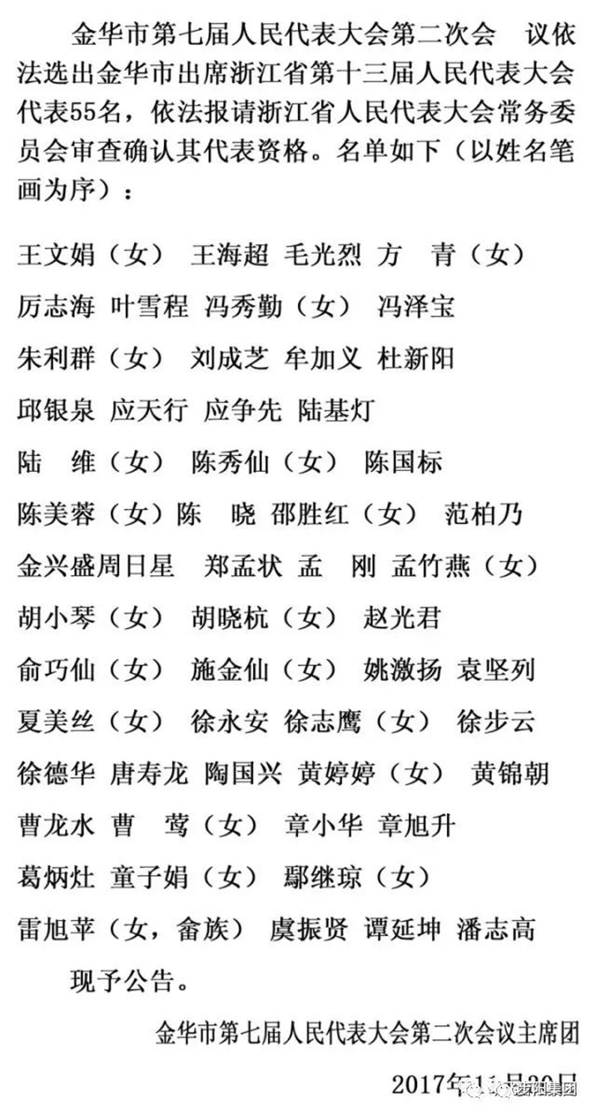 本次大會(huì)上,通過(guò)無(wú)記名投票方式進(jìn)行差額選舉,選舉產(chǎn)生出55名金華市出席浙江省第十三屆人民代表大會(huì)的代表。