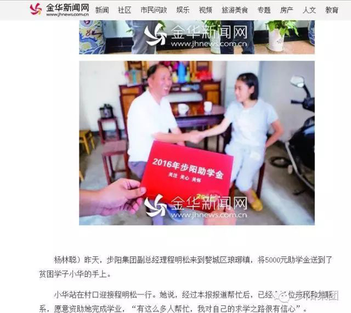 Recently, the "Buyang Million Public Welfare Fund" Scholarship Foundation, together with Jinhua Evening News, Jinhua Youth League Committee and Yongkang Daily, jointly carried out the "2016 Dream College Campaign", and the Foundation found a number of poor students with good character and academic performance in the city. Most of these families are poor due to illness or disaster, but the children have excellent performance. Yesterday, the financial aid has been distributed to the children through door-to-door visits or centralized distribution.