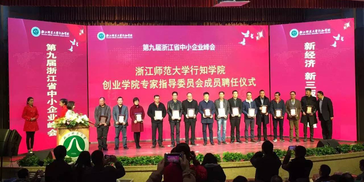 In the afternoon, the 9th Zhejiang Province SME Summit jointly organized by Zhejiang Young Entrepreneurs Association and Zhejiang Normal University Xingchi College was held in the lecture hall of Xingchi College of Zhejiang Normal University, where more than 400 SME entrepreneurs from all over the province and part-time professors of Xingchi College gathered in Jinhua to discuss how to transform, upgrade and develop small and medium-sized enterprises under the new economic situation, and how to carry out innovation and entrepreneurship in the trend of "mass entrepreneurship and innovation". How to carry out innovation and entrepreneurship among college students in the trend of "mass entrepreneurship and innovation". At the meeting, Mr. Xu was appointed as a steering member of the Entrepreneurship Committee of ZJU together with Mr. Zhu Bin, Deputy Secretary of Zhejiang Provincial Youth League Committee, Mayor of Yiwu City and Mayor of Lanxi City.
